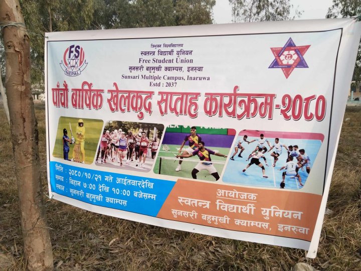 सुनसरी बहुमुखी क्याम्पस अतिरिक्त क्रियाकलाप समितिको आर्थिक सहयोग तथा स्वतन्त्र विद्यार्थी यूनियन सुनसरी बहुमुखी क्याम्पसको आयोजना भइरहेको उक्त खेलकुद कार्यक्रममा फुटवल, क्रिकेट, भलिवल, दौड, कबड्डी र ब्याडमिन्टन प्रतियोगिता हुने भएको छ ।